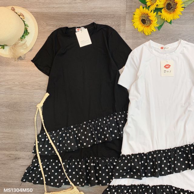 Đầm thun suông bèo tầng QC Đầm thun suông phối bèo tầng chấm bi cưng xỉu . From suông dễ mặc ko kén dáng , thoải mái , che khuyết điểm vòng 2 , đùi to , bầu bí bon chen đc luôn ạ . Nhiều màu xinh lắm nạ , màu nào cũng đẹp From dưới 60kg