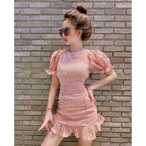 Giới thiệu Đầm tiểu thư nữ, đầm tay búp cổ tròn hở lưng, đầm nhún đuôi cá ôm body tôn dáng, đi chơi dự tiệc siêu sang chảnh