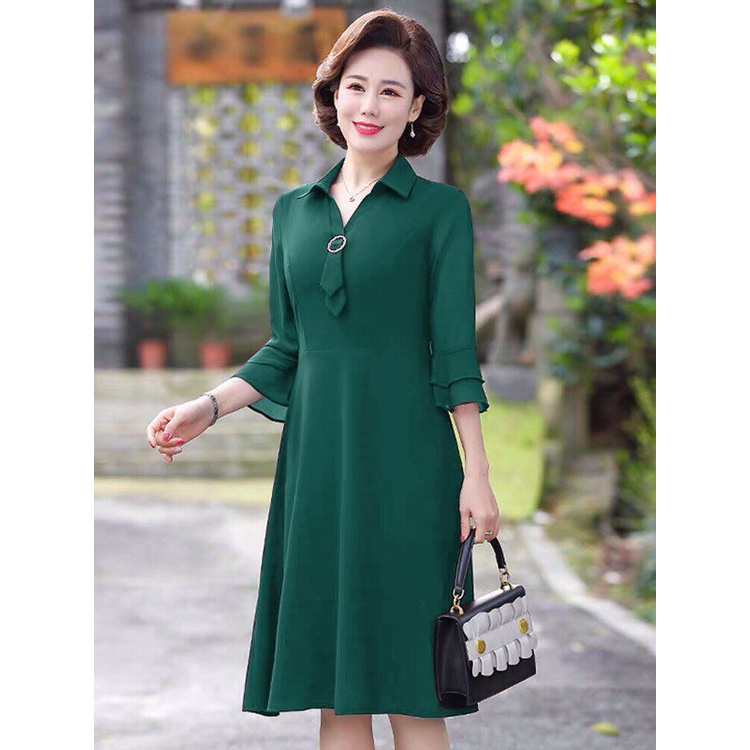 Giới thiệu Đầm trung niên sang trọng u40 u50 dự tiệc cho mẹ chất liệu voan cổ sơ mi tay lỡ dáng suông qua gối đẹp thanh lịch