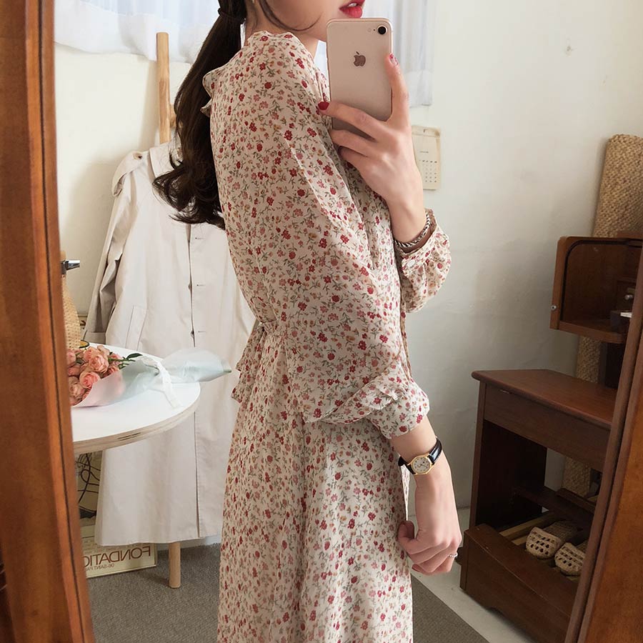 Thời Trang Nữ > Đầm/Váy > Đầm vải voan hoa tay dài cổ điển 29890