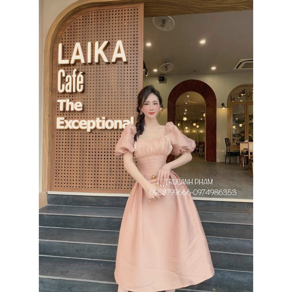 Giới thiệu Đầm váy nữ cổ vuông tay phồng ngực xếp ly from dáng xòe sang trọng, quý phái thời trang nữ dự tiệc xinh xắn