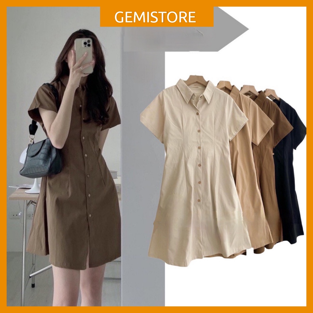 Giới thiệu Đầm Váy Nữ GemiStore Cổ Sơ Mi Cài Cúc Chiết Eo Lưng Chun, Váy Nữ Mặc Tôn Dáng Nhiều Màu Xinh