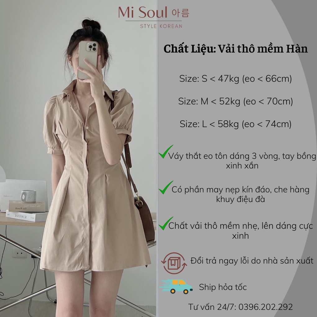Giới thiệu Đầm Váy Sơ Mi Thắt Eo Tay Bồng MISOUL, Váy Sơ Mi Nữ xinh xắn Hàn Quốc thiết kế cao cấp 103