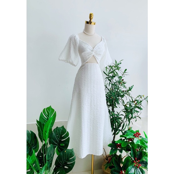 Giới thiệu Đầm váy xoắn ngực hở eo tay phồng đi tiệc dạo phố