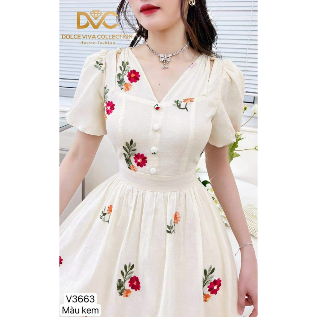 Giới thiệu Đầm váy xốp hoa tay phồng nút bọc cổ tim khoét vai điệu đà xinh xắn Ht089