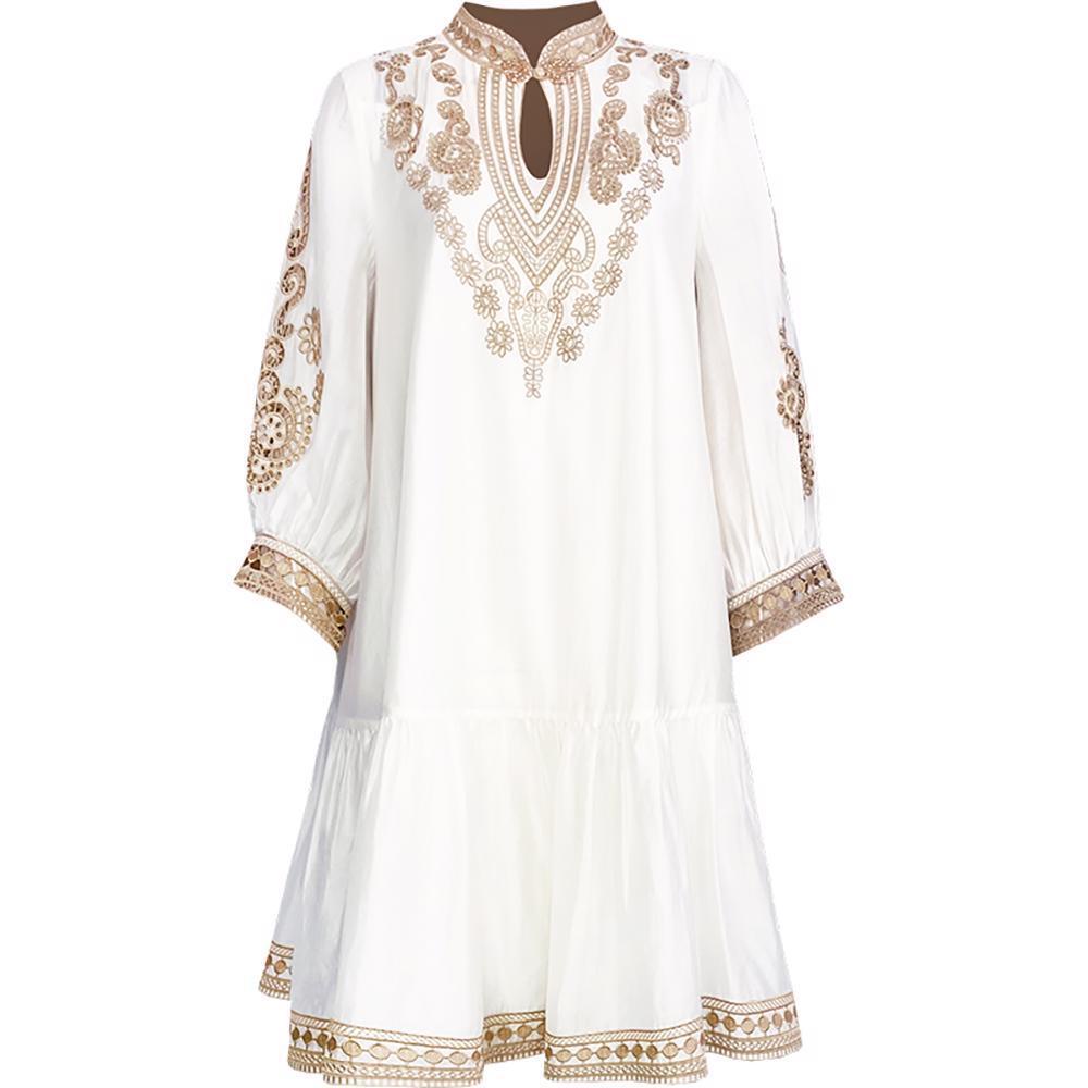 Tên vải: polyester Thủ công: Thêu / Thêu Phong cách: Thời trang Hình thức kết hợp: một mảnh Chiều dài váy: váy midi Loại váy: Váy chữ A Loại cổ áo: cổ đứng Kiểu tay áo: tay áo bình thường Chiều dài tay áo: nửa tay áo Loại eo: eo giữa Loại phong cách: đi làm ôn hòa Placket: Áo chui đầu