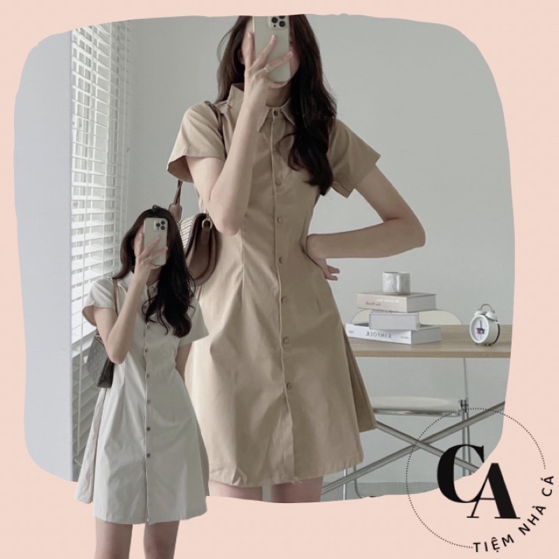 Giới thiệu Đầm xinh xắn váy sơmi cổ đức chất kaki mỏng chun lưng dáng lỡ ulzzang hàn quốc (ảnh thật/có sẵn) Tiệm Nhà Cá