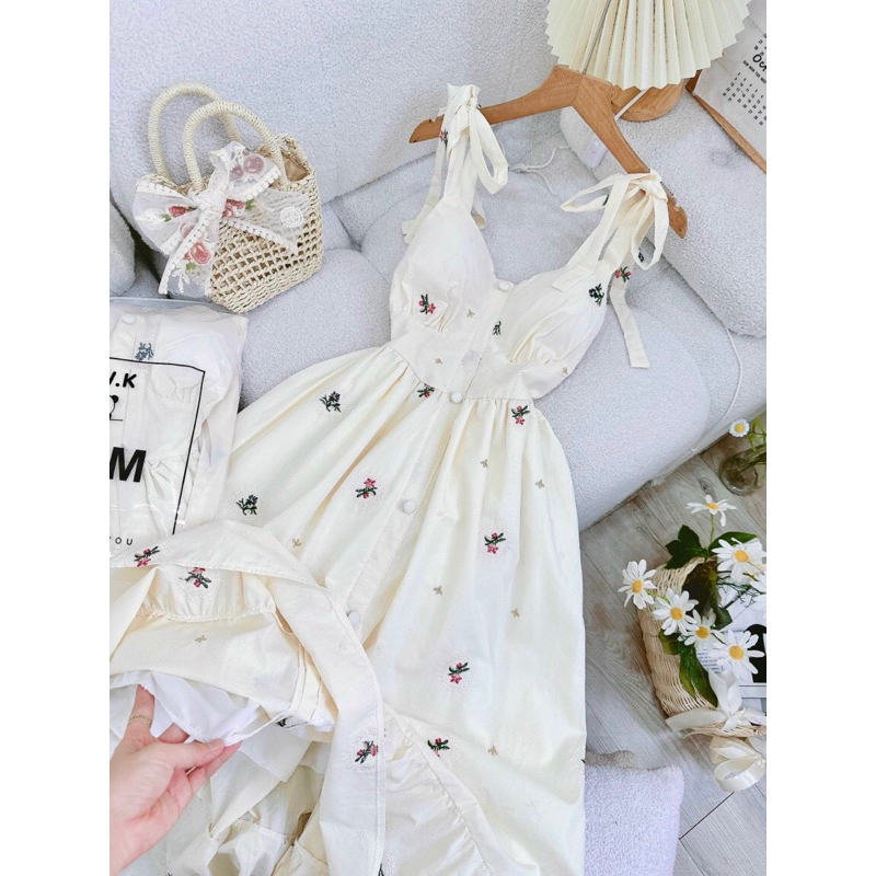 ▪️ Đầm dây nhúng thun sau Chất liệu: xô thêu Size: Freesize dưới 57kg Màu: nude