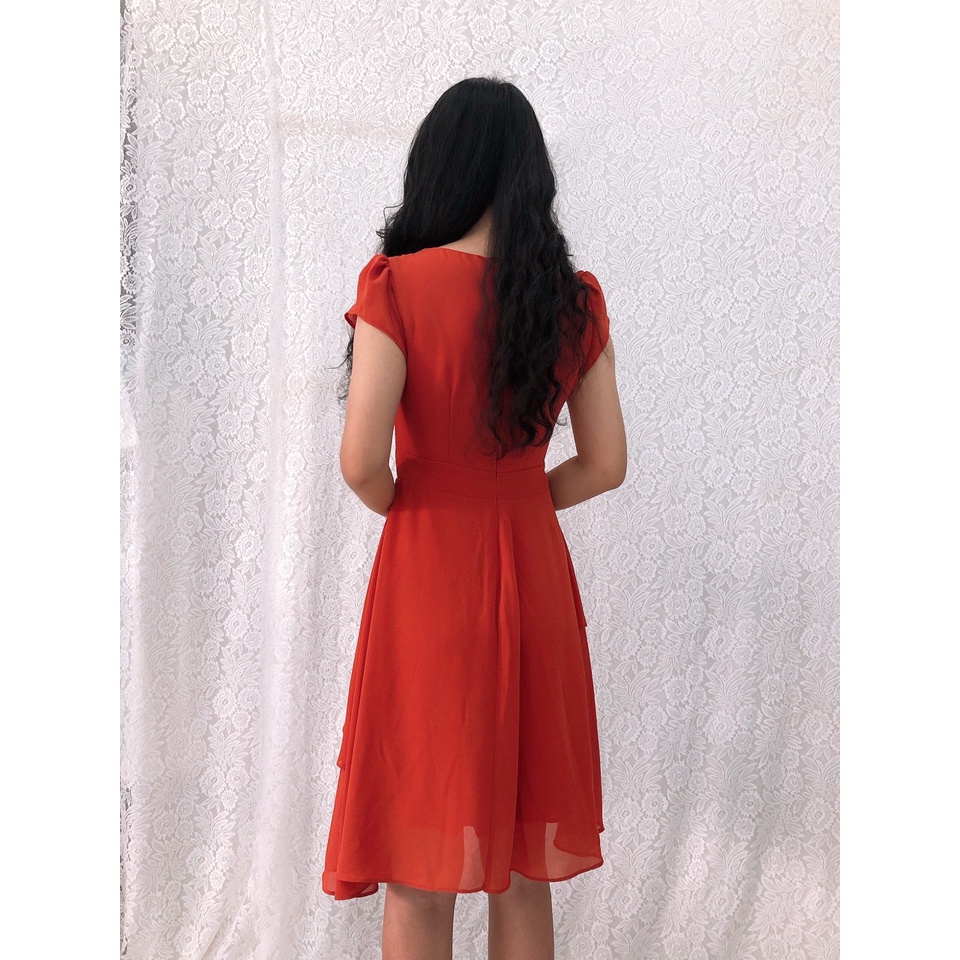 THÔNG TIN SẢN PHẨM Đầm xòe chiffon đính nơ cổ - GR0148 - Mã SP: GR0148 - Màu sắc: đỏ, cam, đen - Chất liệu: chiffion có lót thun - Kiểu dáng : Đầm dáng xòe, cổ tròn đính nơ ngực, tay ngắn búp sen, tra dây kéo sau lưng. kiểu dáng trẻ trung, xinh đẹp, sang trọng - Phù hợp : Đi chơi, đi tiệc, công sở ,... dễ dàng phối với nhiều phụ kiện khác - Kích thước: M, L, XL, XXL, 3XL, 4XL