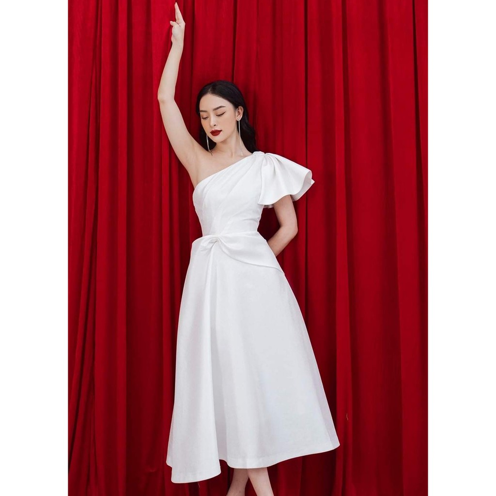 Giới thiệu Đầm xòe dự tiệc lệch vai nhún eo dự tiệc sang trọng (HÀNG CAO CẤP)