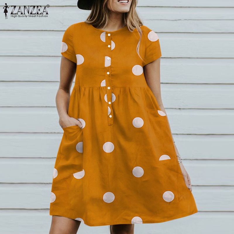 Giới thiệu Đầm xòe Zanzea tay ngắn cổ tròn họa tiết chấm bi thời trang cho nữ