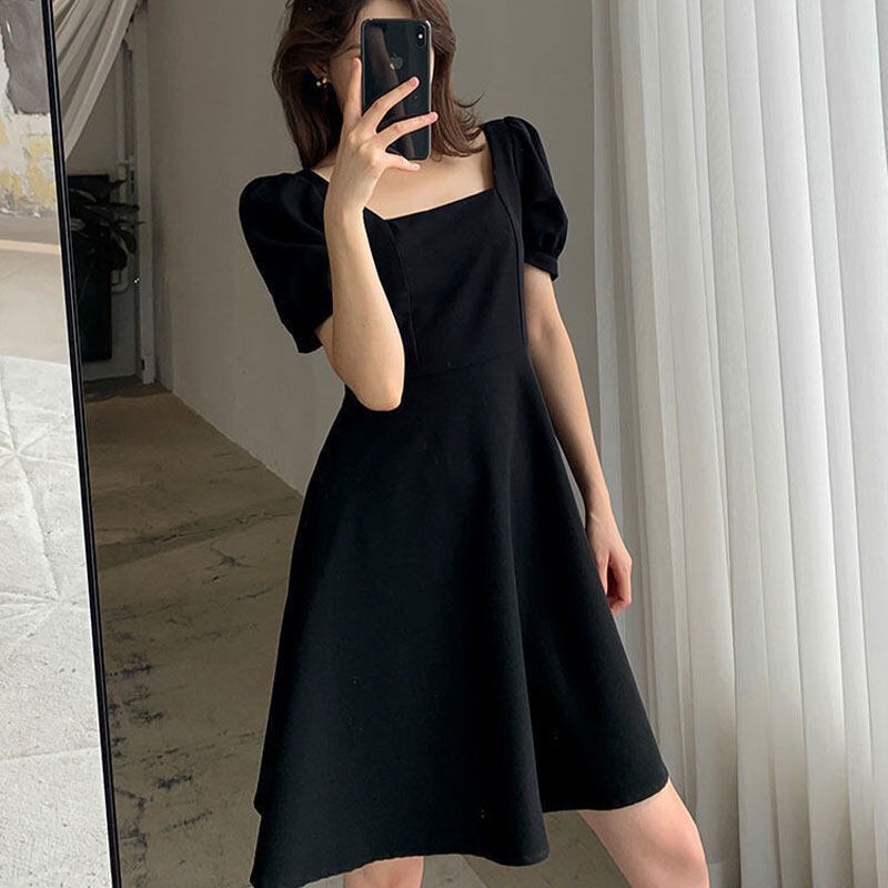Phong cách: Ngọt ngào Họa tiết: Màu trơn Xuất xứ: Quảng Châu Chiều dài đầm: đầm ngắn Loại đầm: đầm chữ A Kiểu cổ: Cổ vuông Chiều dài tay: Tay ngắn Loại lưng: Lưng cao Các yếu tố phổ biến: Khâu Chất vải: Sợi polyester (polyester) 81% -90% Màu sắc: Đen, đỏ Kích thước: S, M, L, XL, 2XL Phong cách: Thường ngày đơn giản