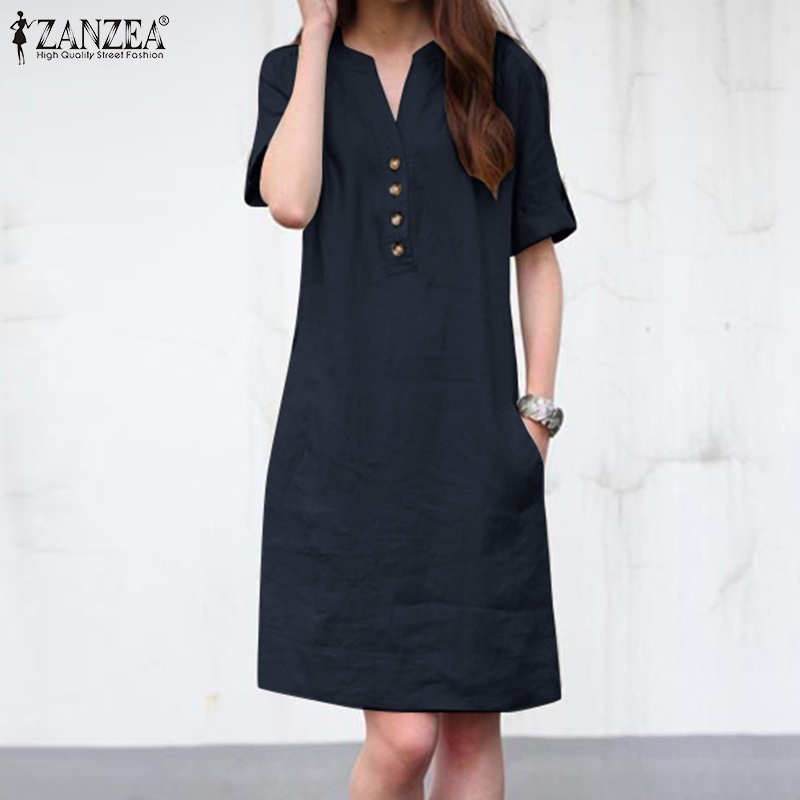 Giới thiệu Đầm Zanzea tay lửng cổ chữ V màu trơn thời trang dành cho nữ