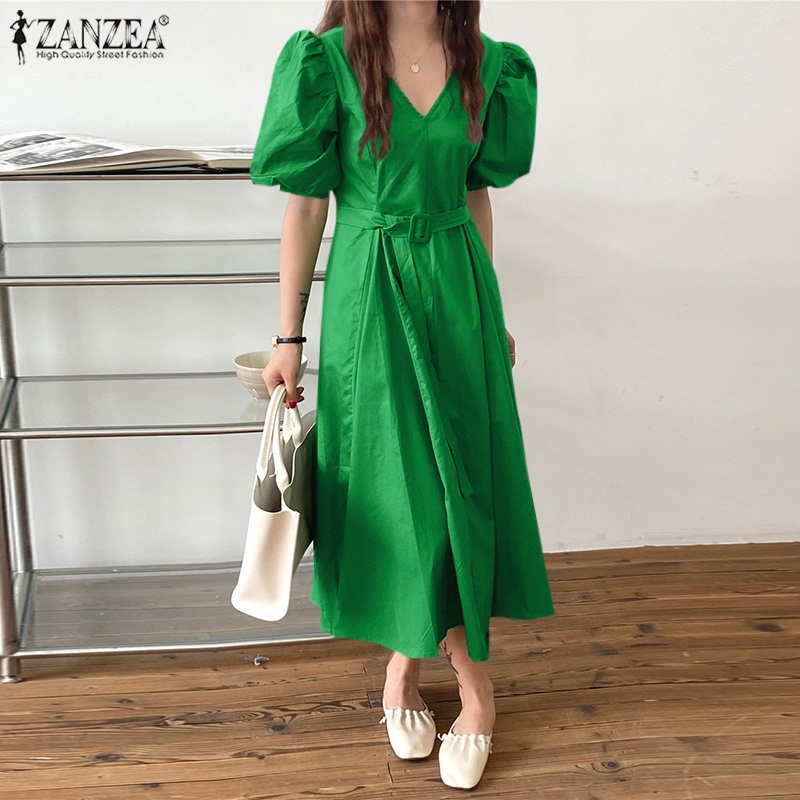 Giới thiệu Đầm Zanzea tay phồng cổ chữ V phong cách Hàn Quốc thời trang cho nữ