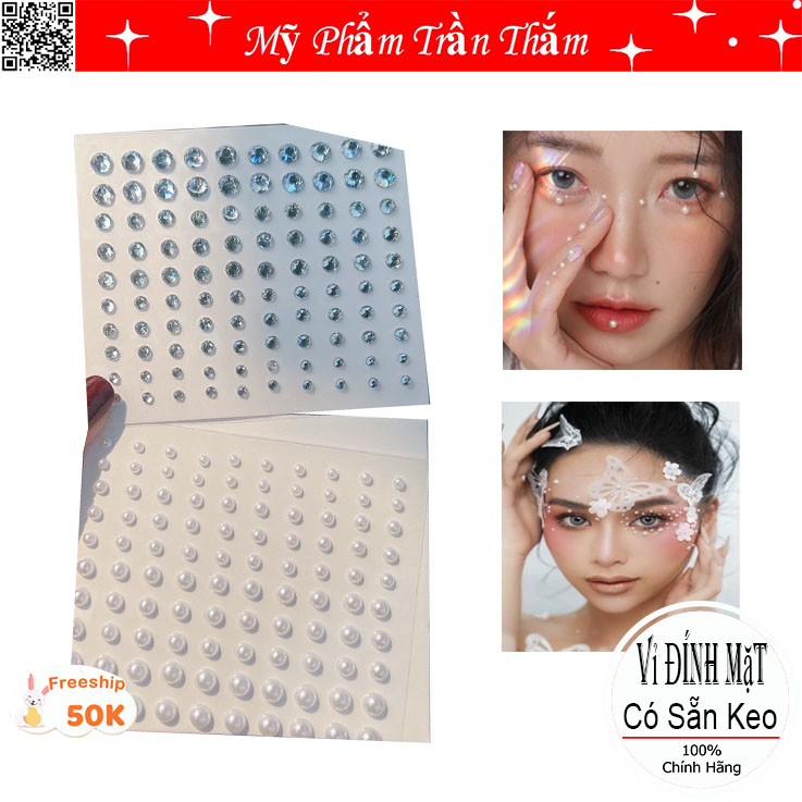 Đá dán đã có sẵn keo, nếu quý khách dùng lâu có thể dùng keo gắn mi để được chắc chắn hơn 1 miếng gồm 100 hạt nhiều size mix