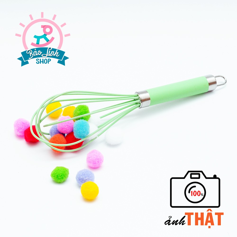 - Ngoài công dụng giúp các con trải nghiệm công việc nhà (dành cho bé khoảng từ 2 tuổi trở lên), sản phẩm đánh trứng còn được kết hợp với pompom tạo ra hoạt động vận động tinh rất tốt cho các bé từ 1 tuổi trở lên (tham khảo hình ảnh mô tả sản phẩm). Với hoạt động này sẽ giúp các bé rèn luyện sự khéo léo điều khiển các khớp tay, khi đôi tay linh hoạt sẽ giúp phát triển não bộ, phát triển trí tuệ cho bé.
