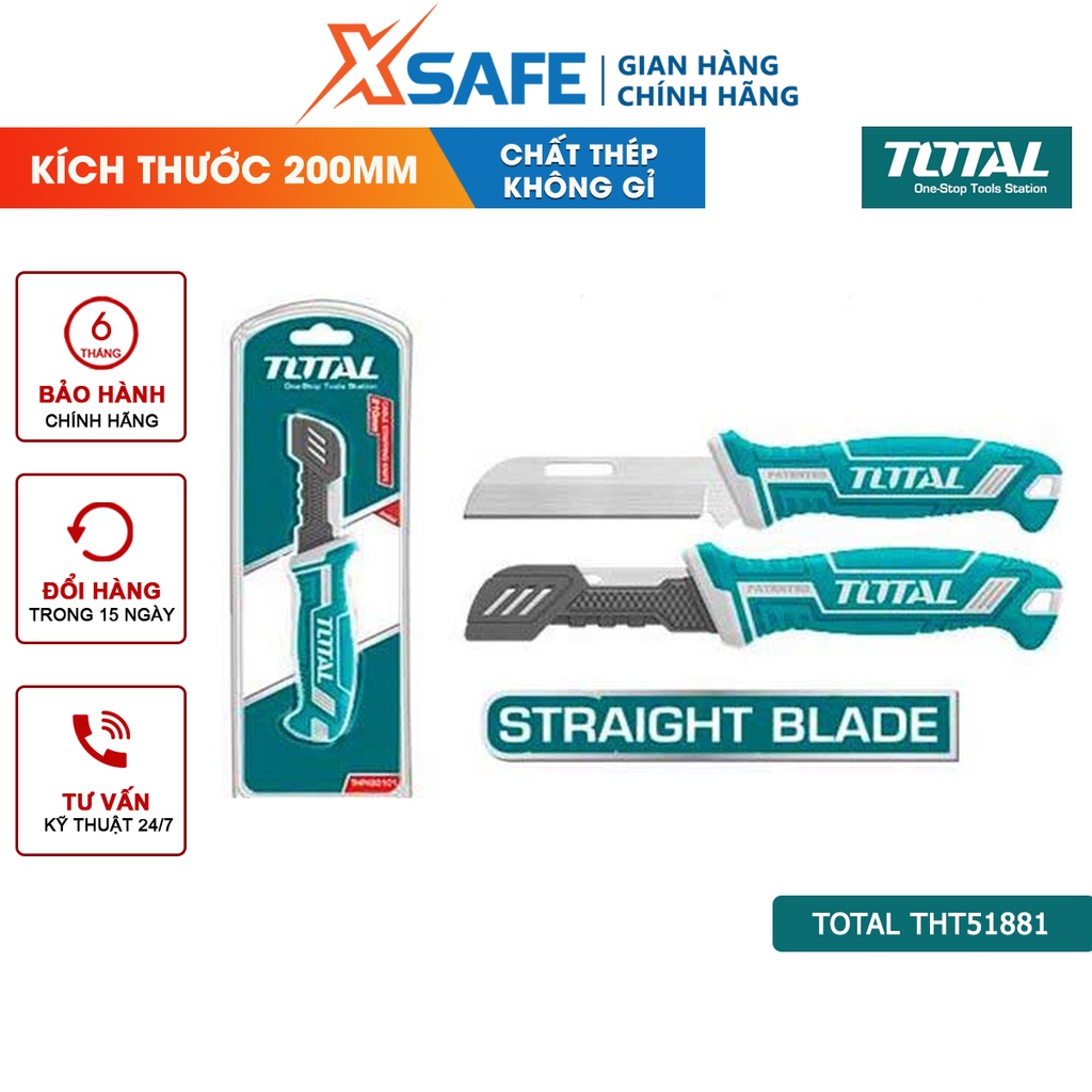 Thông số kỹ thuật - Mã sản phẩm: THT51881 - Nhà sản xuất: Total - Xuất xứ: PRC - Kích thước: 200mm - Lưỡi thẳng - Chất liệu: thép không gỉ - Có nắp vỏ nhựa bảo vệ lưỡi - Tay cầm Total thiết kế độc đáo - Đóng gói bằng vỉ nhựa giấy - Bảo hành: 6 tháng