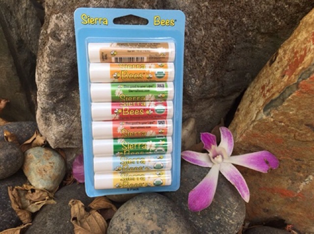 Son dưỡng môi hữu cơ Sierra bees được tạo nên bởi những nguyên liệu hoàn toàn hữu cơ được chế biến bằng các phương pháp mà không cho bất cứ chất phụ gia nào vô trong quy trình chế biến, vì vậy ta sẽ thu được các nguyên liệu chứa tất cả các chất dinh dưỡng từ thực vật, hoàn toàn lành tính và đương nhiên nguyên liệu hữu cơ sẽ đắt hơn các nguyên liệu thiên nhiên khác. Son dưỡng Sierra Bees nhiều mùi: bơ ca cao, mật ong, lựu, bạc hà, dầu mù u và tràm trà (tamanu & tea tree), bơ hạt mỡ & dầu argan (shea butter & argan oil), không mùi, vani (vanilla)