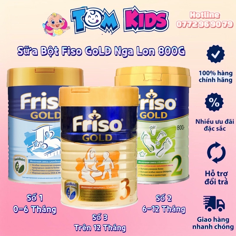 Sữa Friso Gold số 1-2-3-4 của Nga – Giúp bé khỏe mạnh từ bên trong Dòng sản phẩm sữa Friso là thương hiệu sản xuất sữa uy tín với 130 năm hình thành và phát triển trên thị trường được sử dụng rất nhiều cho trẻ nhỏ được các bà mẹ tin dùng rất nhiều. Với các thành phần dưỡng chất có trong sữa Friso Gold giúp bé yêu phát triển toàn diện Có thể nói dòng sản phẩm sữa Friso Gold là dòng sản phẩm uy tín và chất lượng được sản xuất trên một dây chuyền công nghệ hiện đại. Sản phẩm được sản xuất dựa trên những nghiên cứu khoa học chặt chẽ từ các chuyên gia dinh dưỡng hàng đầu. Chọn lọc kỹ càng hết sức nghiêm ngặt từ nguyên liệu đầu vào đến sản phẩm đầu ra. Sữa Friso Gold có tốt không? – Sữa Friso Gold bổ sung các thành phần Synbiotics tạo lên hệ miễn dịch tốt nhất cho bé. Đồng thời cung cấp các hàm lượng vitamin A, E, K và vitamin B giúp tăng cường sức đề kháng tốt nhất cho bé. – Với công thức LockNutri cùng với FOS và các Probiotics lợi khuẩn, sữa Friso Gold giúp hệ tiêu hóa của trẻ ổn định hơn, tránh xa bệnh táo bón hay chứng rối loạn tiêu hóa của trẻ, giúp bé có khả năng hấp thụ dinh dưỡng tốt hơn. – Với các hàm lượng DHA, ARA, taurin, cholin, axit folic trong sữa với lượng thích hợp với nhu cầu phát triển của trẻ. Đồng thời, trong sữa có chứa nhiều loại vitamin và các khoáng chất cần thiết như Natri, Calci, Magie, Selen,…cung cấp năng lượng cho bé mỗi ngày.