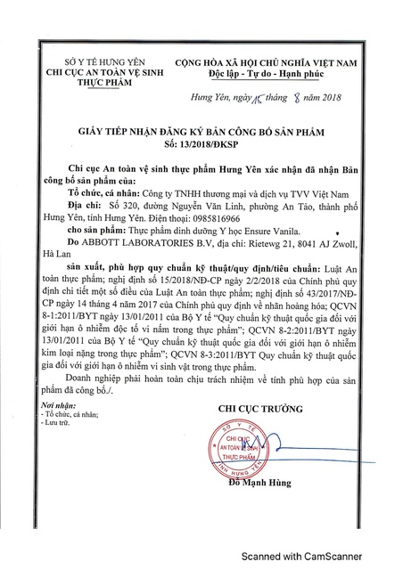 Ensure đã pha phải dùng ngay hay đậy kín cho vào tủ lạnh và dùng trong vòng 24 giờ.