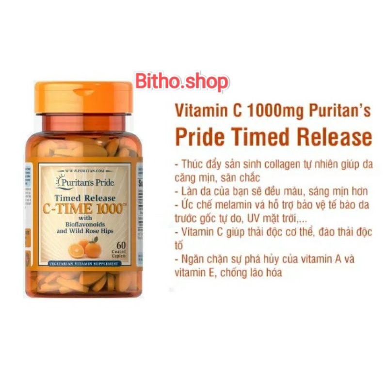 - Viên uống Puritan's Pride Vitamin C 1000mg Timed Release with Rose Hips giúp bổ sung hàm lượng vitamin C thiết yếu cho cơ thể, cải thiện và dự phòng các vấn đề do thiếu vitamin C