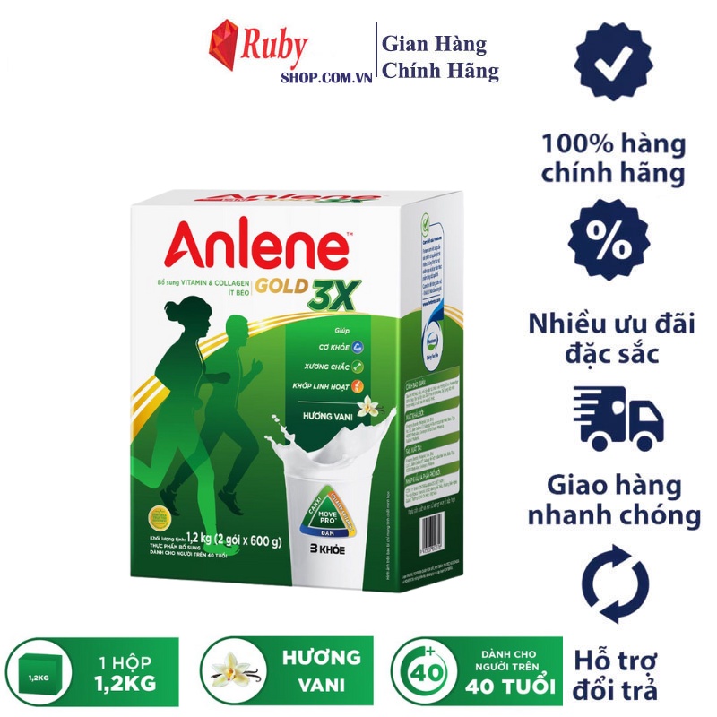 SỮA ANLENE GOLD HƯƠNG VANI: _x000D_ Sản phẩm sữa cho người lớn tuổi (từ 40 tuổi trở lên) với CÔNG THỨC CẢI TIẾN MOVEPRO chứa hàm lượng cao Đạm, Canxi, Collagen, các loại Vitamin (B, C, D) & Khoáng chất (Magiê, Kẽm), giúp duy trì hệ vận động Cơ-Xương-Khớp khỏe mạnh, linh hoạt!_x000D_ 03 LỢI ÍCH VƯỢT TRỘI TRONG MỖI LY SỮA ANLENE GOLD: _x000D_ CƠ KHỎE: _x000D_ Sữa Anlene Gold chứa Đạm, Magiê, Vitamin B, Vitamin D có vai trò thiết yếu với việc duy trì mật độ cơ. Cơ khỏe mạnh giúp hỗ trợ sự vận động thêm nhanh nhẹn & linh hoạt. _x000D_ XƯƠNG CHẮC: _x000D_ Canxi, Vitamin D, Magiê, Kẽm rất quan trọng trong việc duy trì mật độ xương. Hệ xương chắc khỏe là nền tảng vững chắc để nâng đỡ cho các cơ quan và hoạt động của cơ thể. _x000D_ KHỚP LINH HOẠT: _x000D_ Vitamin C hỗ trợ sự hình thành collagen – thành phần quan trọng giúp sụn khớp khỏe mạnh, từ đó hỗ trợ vận động linh hoạt. _x000D_ Uống 02 ly sữa Anlene mỗi ngày để thoải mái vận động và làm những điều mình thích!_x000D_ Sản phẩm có đa dạng hương vị để bạn lựa chọn và thay đổi tùy theo sở thích: _x000D_ Sữa Anlene Gold Hương Vani_x000D_ Sữa Anlene Gold Vị Sô-cô-la_x000D_ Sữa Anlene Gold Vị Cà-phê_x000D_ HƯỚNG DẪN SỬ DỤNG: _x000D_ Cho 04 muỗng sữa Anlene (khoảng 35g) vào 200 ml nước chín (sữa sẽ ngon hơn nếu pha nước ấm) và khuấy đều. _x000D_ Đối với người lần đầu tiên uống sữa, để tránh hiện tượng không dung nạp Lactose – thành phần tự nhiên của sữa, nên uống sau bữa ăn và bắt đầu bằng một lượng nhỏ 50 ml, sau đó tăng dần lên 200 ml trong vòng 2 tuần. _x000D_ ***Thông tin cảnh báo: Không dùng sản phẩm khi đã hết hạn sử dụng. Sản phẩm có chứa sữa, collagen chiết xuất từ cá và sản phẩm từ đậu nành