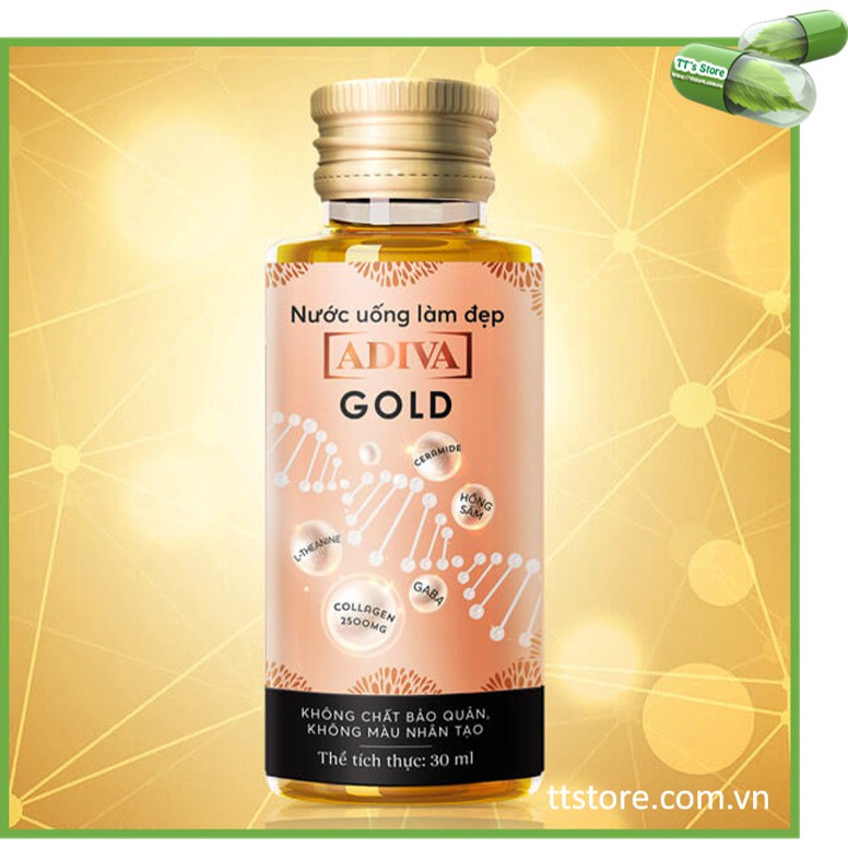 THÀNH PHẦN: ADIVA GOLD chứa: 100% Collagen peptide, ceramide, Biotin, Amla, L-theamin, Gaba, Hồng sâm. Vitamin C D B3 6 12