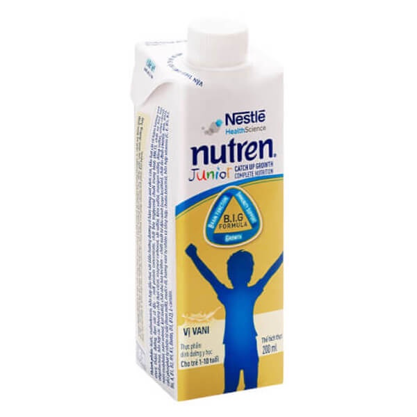 Mô tả sản phẩm NUTREN® JUNIOR (dạng nước) là công thức dinh dưỡng đầy đủ và cân đối dành cho trẻ từ 1-10 tuổi bị suy dinh dưỡng hoặc có nguy cơ suy dinh dưỡng, trẻ có nhu cầu năng lượng cao, hỗ trợ dinh dưỡng hồi phục sức khỏe cho trẻ trong giai đoạn bệnh, trước và sau khi phẫu thuật.