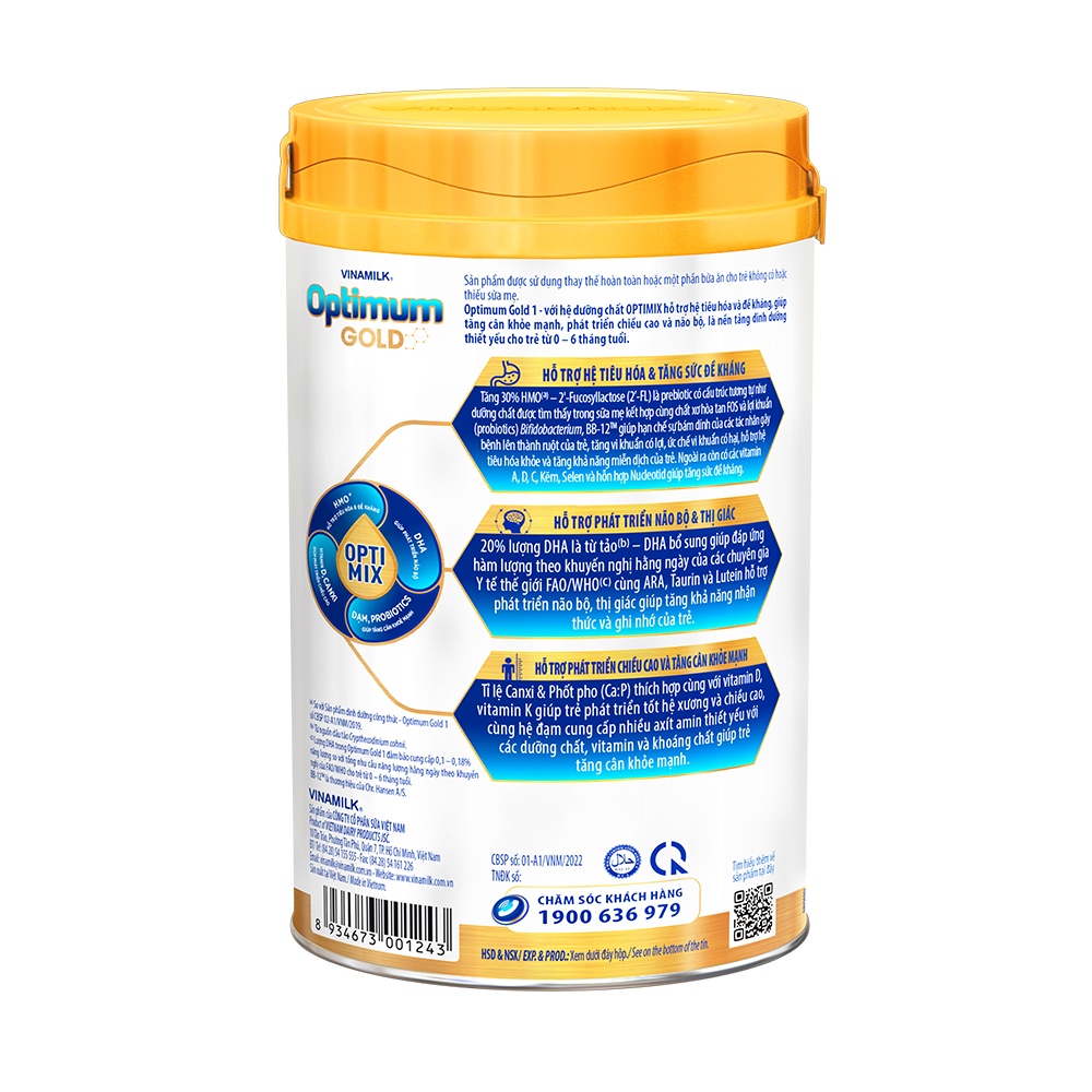 Tên sản phẩm: Sữa bột Optimum Gold 1 800g (cho trẻ từ 0 - 6 tháng tuổi) ''Optimum Gold - chất lượng quốc tế hỗ trợ phát triển toàn diện. Sản xuất trên dây chuyền công nghệ Đức & dưỡng chất nhập khẩu hoàn toàn, Optimum Gold hỗ trợ phát triển toàn diện từ tiêu hoá, đề kháng, trí não, đến chiều cao vượt trội. Tính năng sản phẩm: