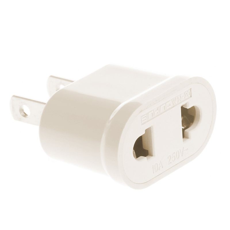Convert AC plug from European (2-round-pins) to US (2-flat-pins).
