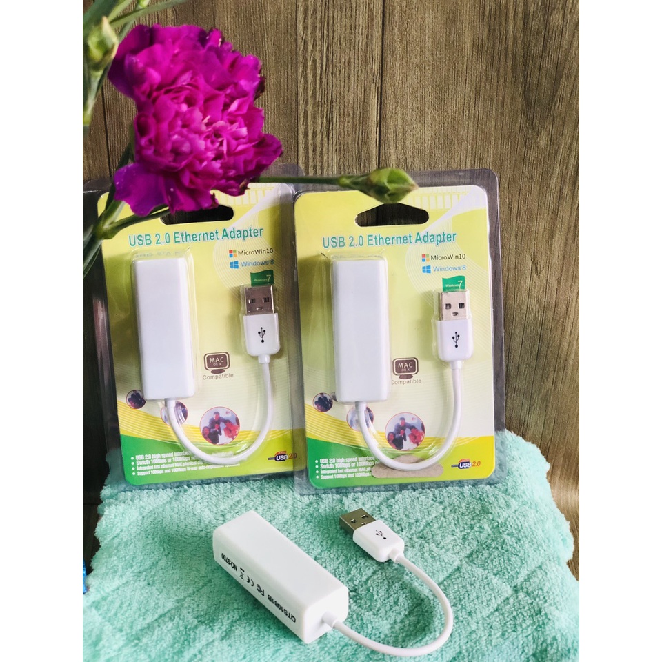 Tốc độ internet : 10Mb / 100Mbs Cổng kết nối : USB 2.0 Công dụng : được sử dụng trong trường hợp máy tính bị hỏng hoặc trục trặc cổng lan Kiểu dáng nhỏ, thích hợp trong trường hợp cổng LAN của laptop bị hư hoặc muốn lắp thêm cổng LAN để học tập, nghiên cứu mạng Nguồn : USB lan lấy điện trực tiếp từ máy tính không cần nguồn điện ngoài Card mạng usb hỗ trợ hầu hết các hệ điều hành hiện nay như : windows, mac OS, Linux....