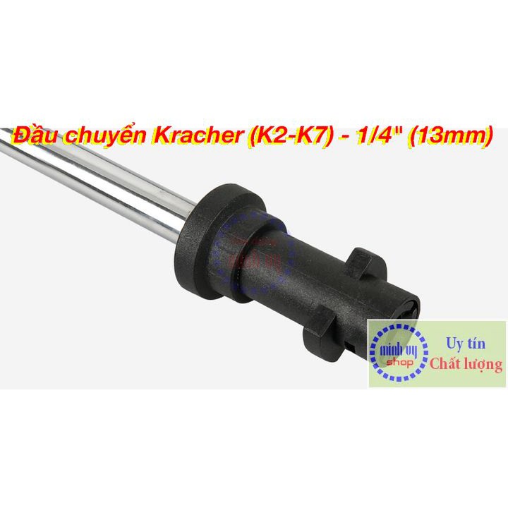 Đầu chuyển đuôi s.úng của máy rửa xe Karcher K2-K7 sang ren tỏng 1/4" Thông tin sản phẩm: Chất liệu: nhựa tổng hợp Kết nối: chuôi K2-K7, 1 đầu ren tỏng 1/4" (13mm)