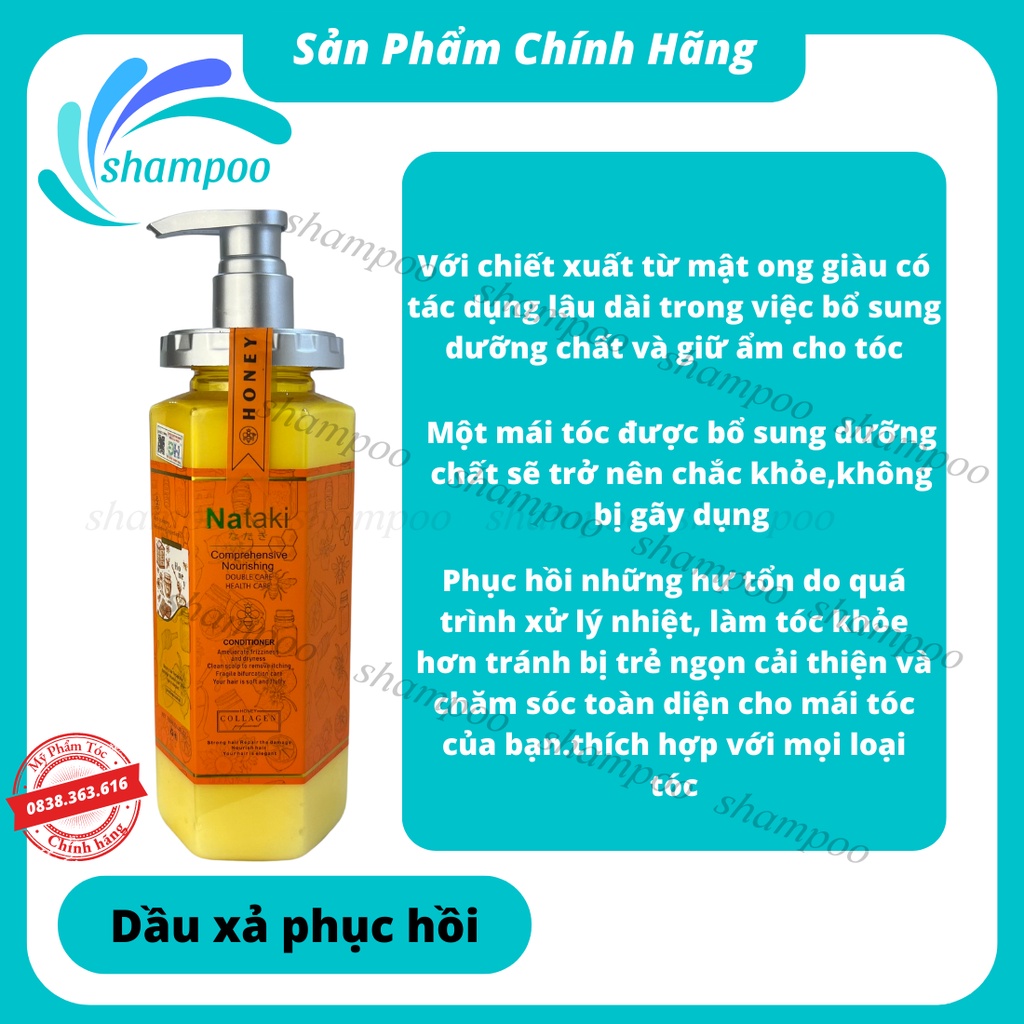 Dầu gội đầu cặp gôị xả NATAKI mẫu mới 760ml tinh chất mật ong dưỡng ẩm phục hồi chăm sóc tóc