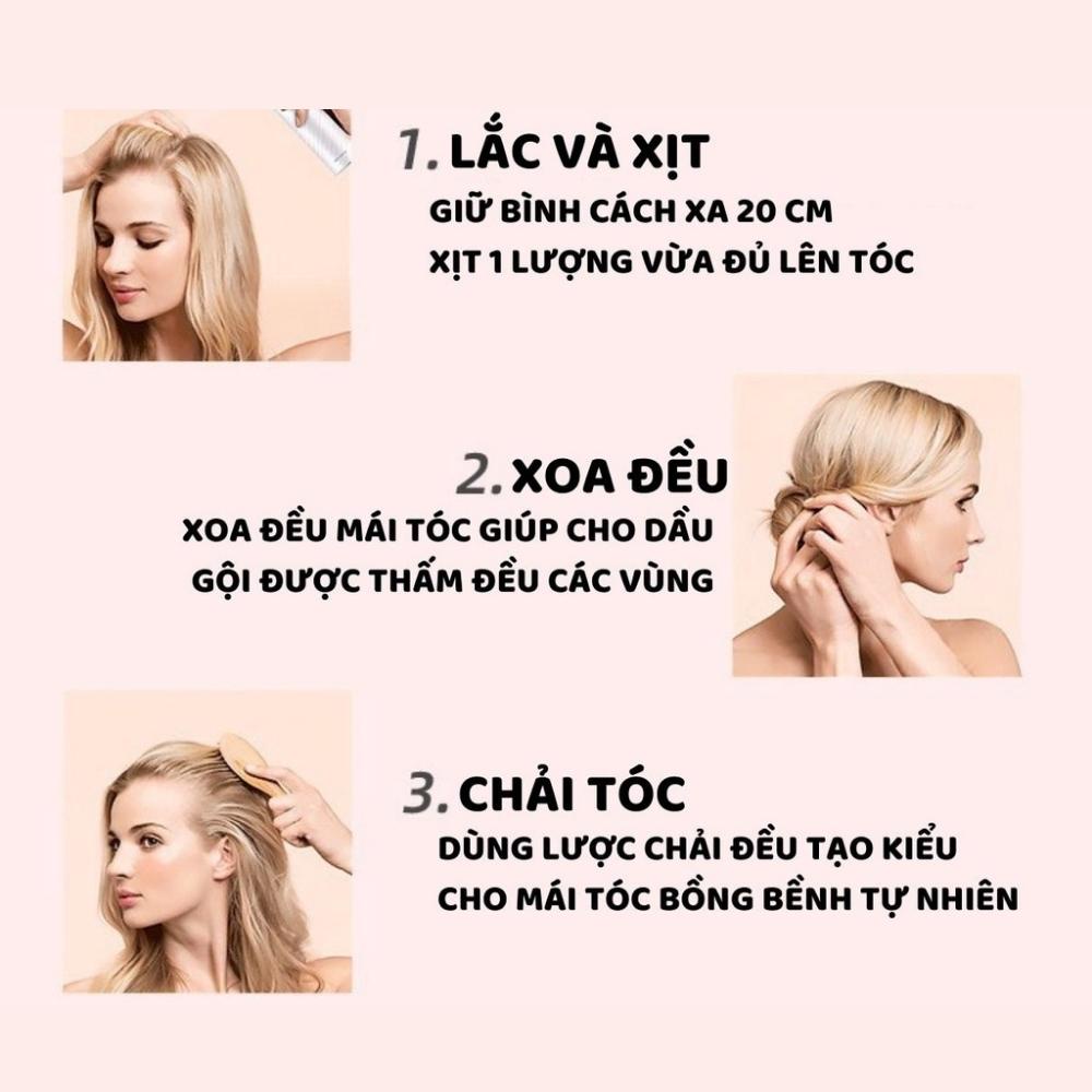 ** Cách sử dụng dầu gội khô BUTTERFLY SHADOW 150ml Bước 1: Lắc đều chai dầu gội khô, để cách tóc một khoảng 20-30cm. Xịt lên phần chân tóc và để yên trong 30s. Bước 2: Massage nhẹ nhàng bằng ngón tay hoặc lược để da dầu và dầu gội khô được trung hòa hoàn toàn. Bước 3: Dùng lược chải đều lại để tránh còn sót lại bột trên tóc.