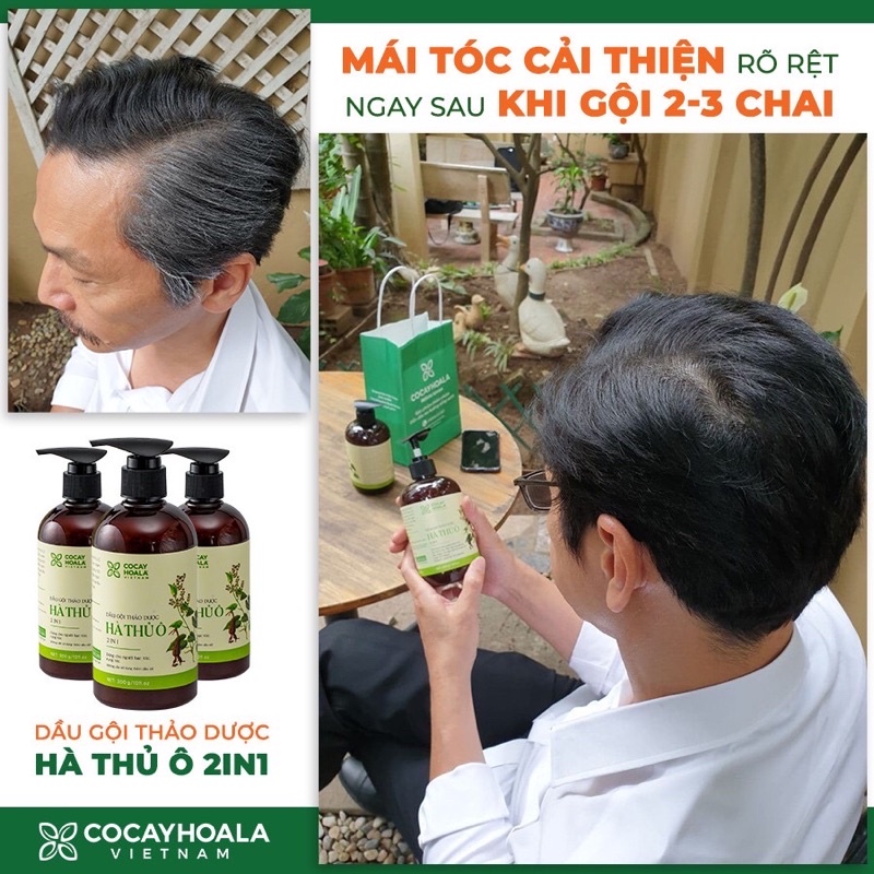 Dầu gội thảo dược rất lành tính, bạn có thể sử dụng cho cả gia đình. Các bé nhà mình cũng dùng, tóc rất mượt và yên tâm khi sử dụng. Chỉ cần dùng 1 tháng là thấy tóc mượt ra rõ ràng và giảm gãy rụng 1. Thành Phần: Ngoài thành phần chính được chiết xuất từ Hà Thủ Ô, nay được bổ sung thêm: Dầu olive, Dầu hạt macca, Argan oil, Collagen, Tinh dầu Bưởi.. 🌿 Hà thủ ô: Hà Thủ Ô được coi là một vị thảo dược "thần dược" trong sách cổ xưa với rất nhiều công dụng đối với sức khỏe như bồi bổ khí huyết, tăng cường lưu thông máu giúp da dẻ hồng hà. Đặc biệt công dụng nổi bật nhất được công nhận hiệu quả rất tốt đối với tóc, làm chậm quá trình bạc tóc, làm đen tóc cũng như kích thích mọc tóc. Tuy nhiên, bạn có thể chưa biết đến phần thân và rễ của cây hà thủ ô có chứa một lượng lớn các chất bao gồm: anthranoid, chrysophanol, emodin, physcion, protid, lipid, lecithin, tanin cùng các chất vô cơ, chất tan trong nước. Đây là những thành phần có tác dụng nổi bật là kích thích lưu thông khí huyết trên da đầu, ổn định sự phân tán của chất melanin giúp tóc đen. 🌿 Dầu Olive: chứa chất c.h.ố.n.g oxi hóa. Có khả năng làm tăng sự khỏe mạnh cho da dầu, đồng thời còn đóng vai trò là dưỡng chất tự nhiên giúp chăm sóc tóc làm tóc sáng bóng và mềm mại hơn 🌿 Dầu hạt macca: Nuôi dưỡng tế bào tóc, phục hồi tóc hư tổn, giúp tóc mềm mại, óng mượt hơn 🌿Dầu Argan: Làm bóng tóc, dưỡng ẩm giúp tóc mềm mượt, phục hồi tóc hư tổn, kích thích mọc tóc và sạch gàu 🌿 Tinh dầu bưởi: giảm rụng tóc, kích thích mọc tóc, nhờ hoạt tính cao nên sẽ cho bạn một da đầu sạch gàu 2. Công Dụng Dầu Gội Hà Thủ Ô: - Cân bằng sắc tố melanin (sắc tố làm đen tóc) - Làm chậm quá trình bạc tóc, kích thích mọc tóc đen. - Làm sạch da đầu - Nuôi dưỡng tóc từ chân tới ngọn - Phục hồi nang tóc hư tổn 3.Tại sao bạn nên lựa chọn dầu gội hà thủ ô trong việc giảm rụng tóc, bạc tóc? => Sử dụng thành phần từ thiên nhiên, an toàn cho người sử dụng =>Ứng dụng công nghệ Nano vào trong sản xuất. Tạo ra các hạt phân tử siêu nhỏ, mang theo các dưỡng chất thẩm thấu vào tận sâu bên trong chân tóc giúp cải thiện và nuôi dưỡng tóc chắc khỏe. =>Tinh chất Hà thủ ô nano - kích thích sắc tố Mầm tóc (sắc tố quy định màu tóc), làm chậm quá trình bạc tóc =>Giảm các triệu chứng ngứa da đầu và làm sạch gàu. => Đặc biệt, kết hợp 2 in 1 - chứa dưỡng chất giúp mềm mượt tóc, nuôi dưỡng từ chân đến ngọn tóc, phục hồi nang tóc hư tổn mà không phải dùng thêm dầu xả. Cảm nhận rõ rệt sau hơn một tháng sử dụng. 4. Cách dùng Dầu Gội Hà Thủ Ô: Bước 1: Làm ướt tóc bằng nước sạch (tốt nhất là nước ấm), nước ấm giúp nang tóc và các lớp biểu bì tóc mở to ra. Bước 2: Xịt dầu gội ra tay với một lượng vừa đủ (khoảng 5ml – 7ml). Sau đó thoa đều lên tóc, Massage tóc nhẹ nhàng trong vài phút để dầu gội thấm sâu vào chân tóc và thân tóc. Bước 3: Xả sạch với nước - Thương hiệu: cocayhoala vietnam - Xuất xứ: Việt Nam - Hạn sử dụng: 3 năm kể từ ngày sản xuất.
