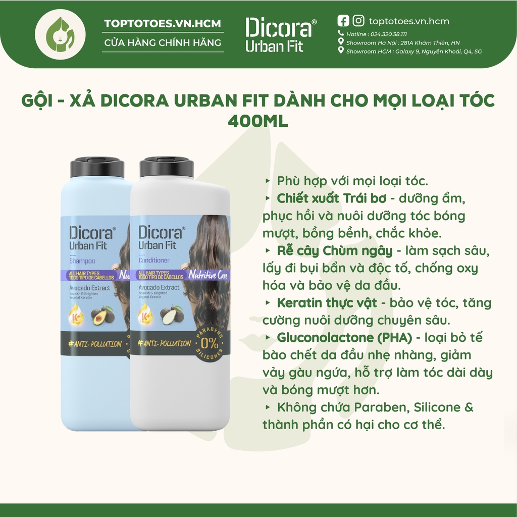 Giới thiệu Dầu Gội Xả Dicora Urban Fit chiết xuất trái bơ dành cho mọi loại tóc - 400ml [NHẬP KHẨU CHÍNH HÃNG 100%]