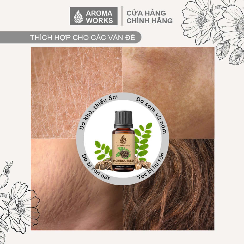 Giới thiệu Dầu hạt Chùm ngây Aroma Works Organic moringa seed oil cấp ẩm, sáng da, mờ nám, mờ nếp nhăn