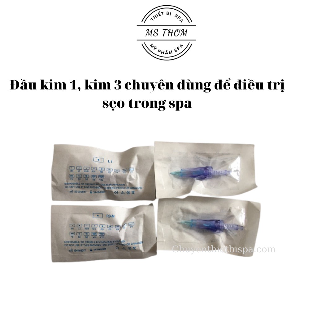Đầu kim L1 và đầy kim R3 là đầu có 1 kim và đầu có 3 kim chuyên được các spa dùng trong liệu trình trị sẹo rỗ, dùng để phá đáy sẹo hiệu quả.