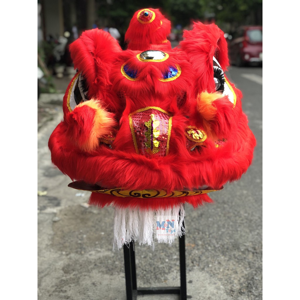 Giới thiệu Đầu lân sư rồng lớn, đầu sư tử trung thu có đèn cỡ đại mây 75x70x65cm (màu đỏ) cho người lớn
