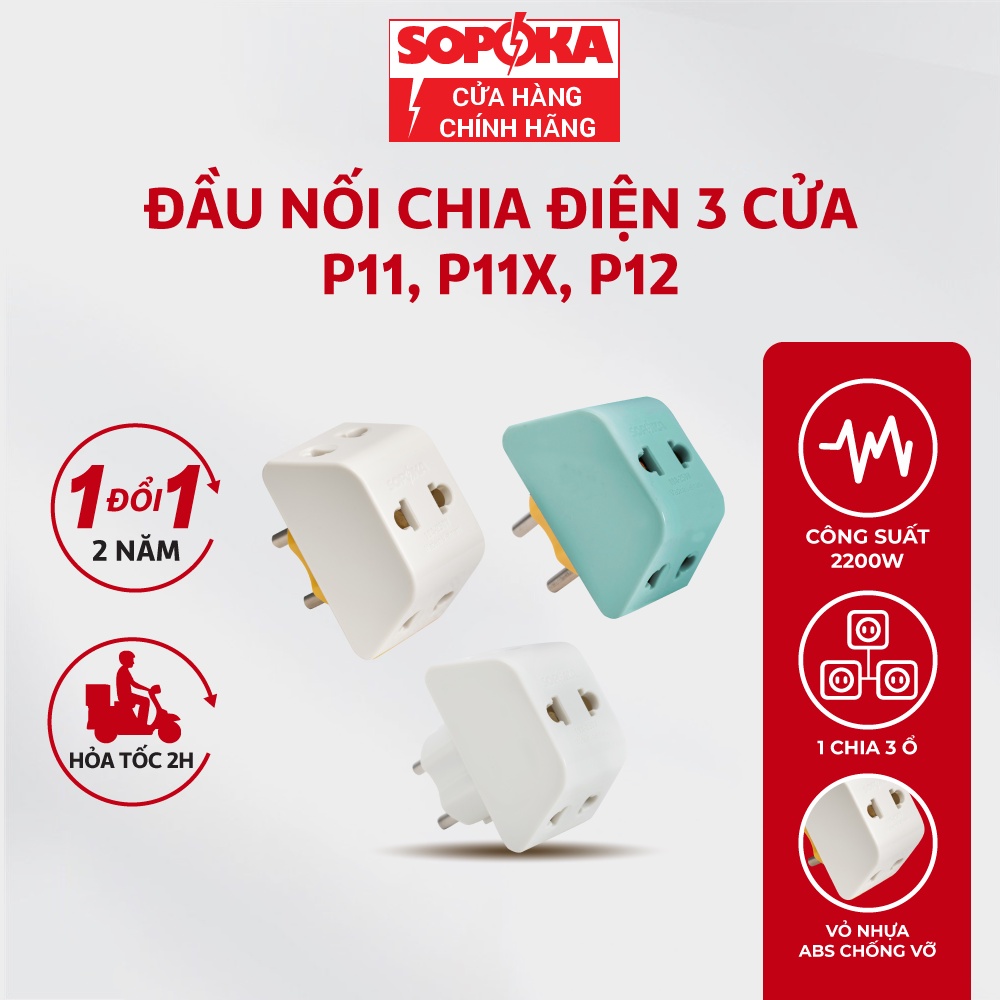 Giới thiệu Đầu nối chia điện đa năng 3 cửa SOPOKA P11 P12 chịu tải 2200W