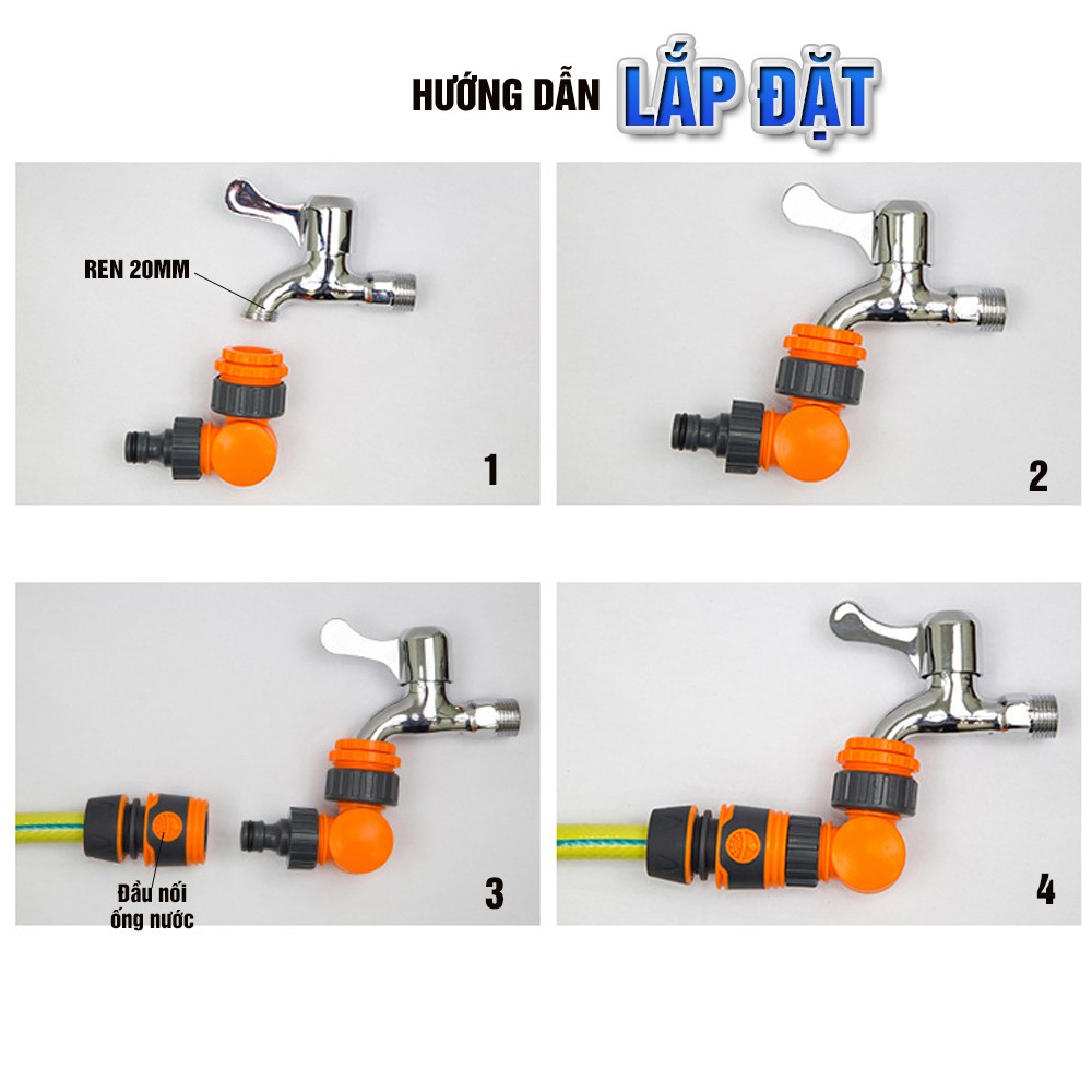 Nhà Cửa & Đời Sống > Ngoài trời & Sân vườn > Thiết bị làm vườn lớn > Đầu nối nhanh vòi nước cổ xoay 360 độ, ống nước mềm từ 14 hoặc 20mm dùng tưới cây hay rửa xe, lắp vòi rửa Minh House