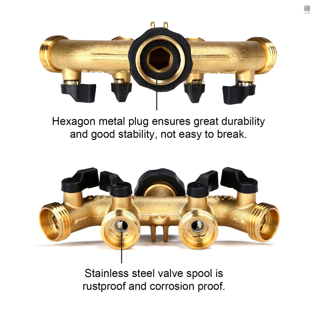 Đầu Nối Ống Nước 4 Chiều 3 / 4in Bằng Đồng Kèm 4 Van Cho Hệ Thống Tưới Nước / Rửa Xe