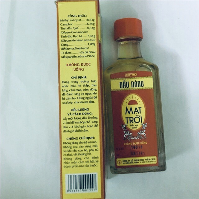 Dầu nóng mặt trời OPC (dùng trong trường hợp xoa bóp nhức mỏi, tê thấp ,đau lưng, cảm cúm)Dầu nóng mặt trời OPC (dùng trong trường hợp xoa bóp nhức mỏi, tê thấp ,đau lưng, cảm cúm)Dầu nóng mặt trời OPC (dùng trong trường hợp xoa bóp nhức mỏi, tê thấp ,đau lưng, cảm cúm) Giá CAS