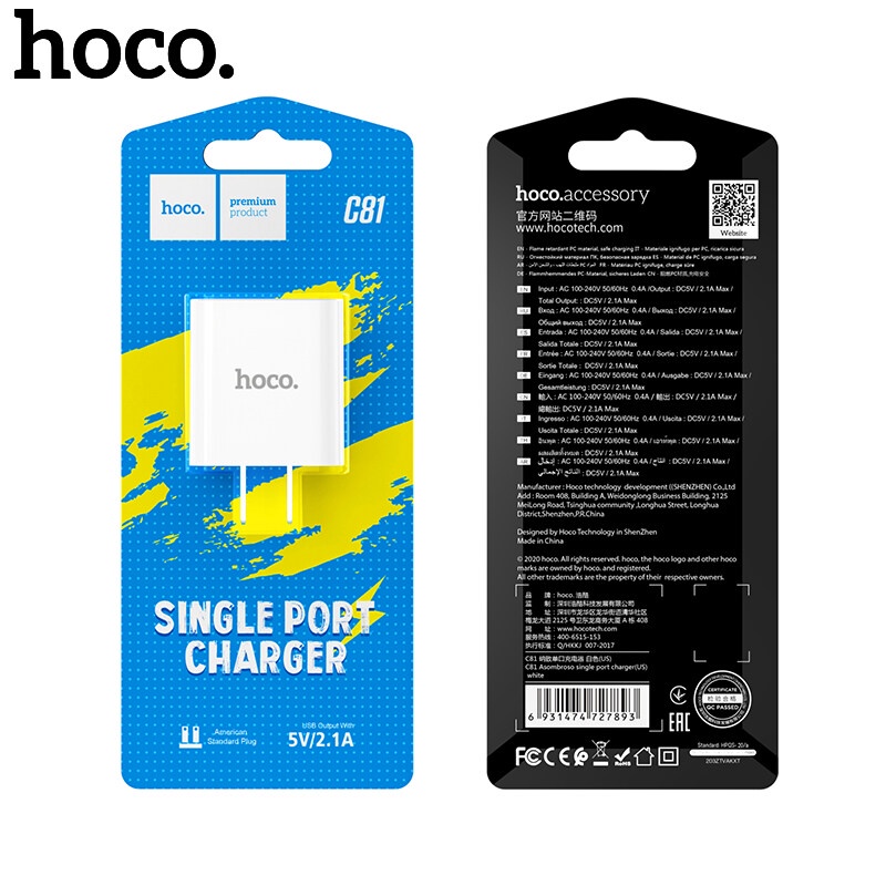 Giới thiệu Đầu Sạc Nhanh HOCO C81 2.1A Cho Điện Thoại Android Samsung Xiaomi