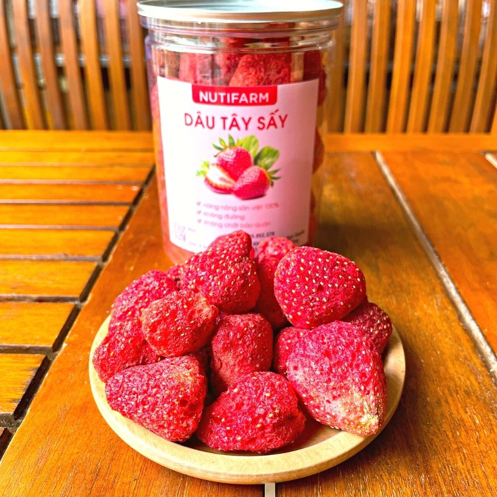Dâu tây sấy giòn NutiFarm 120gr, dâu tây sấy khô không đường đặc sản đà lạt