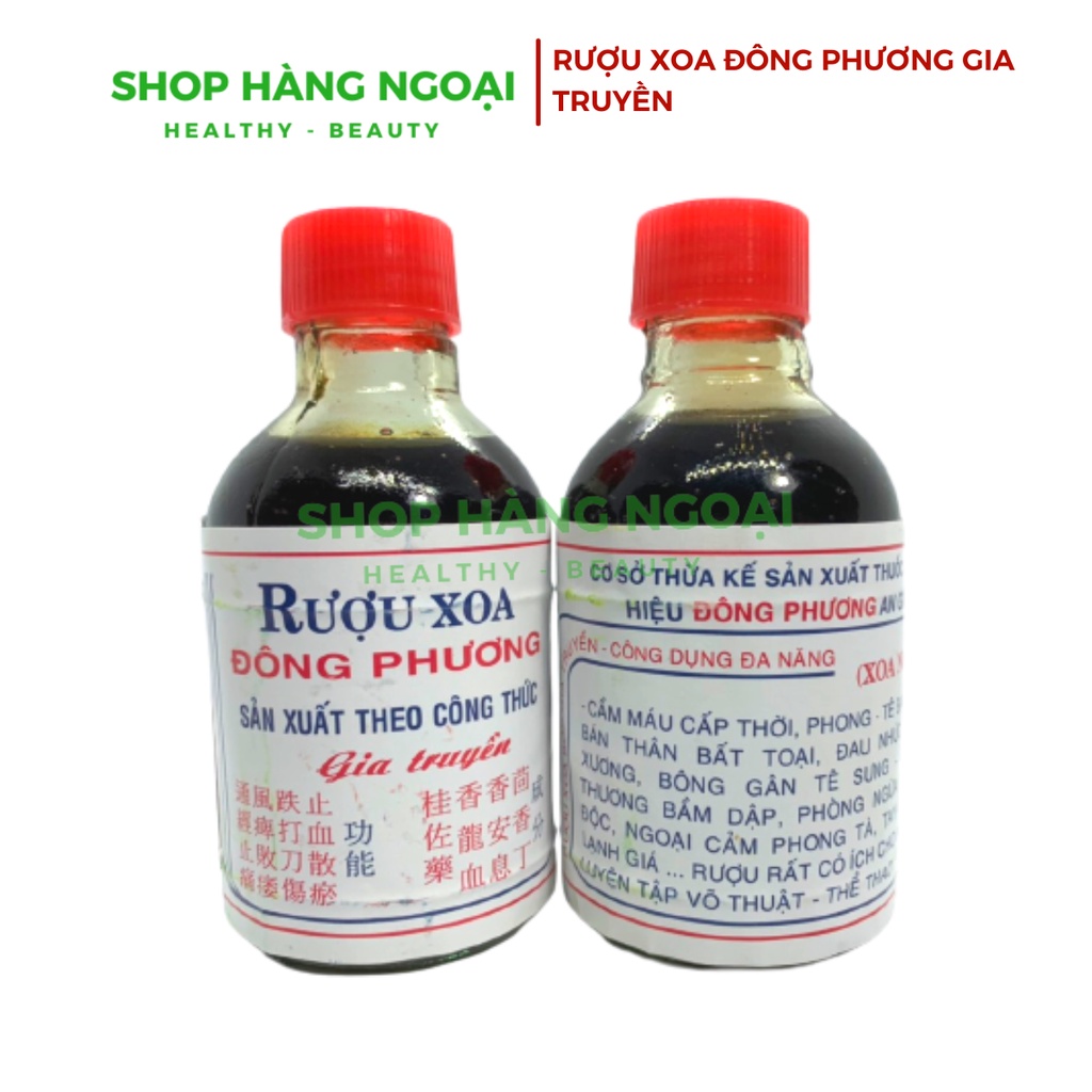 Dầu xoa bóp Đông Phương gia truyền 100ml CÔNG DỤNG: - Phong tê thấp, đau xương, nhức mình, đau lưng, bị chấn thương, trật khớp, bong gân, tiêu sưng, cầm máu, sát trùng. - Chai thủy tinh 100ml - Số lượng 1 chai --- HD: 36 tháng Xuất xứ: An Giang