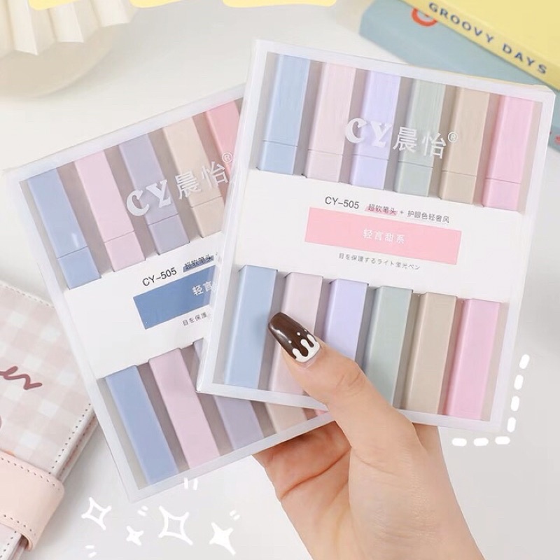 THÔNG TIN SẢN PHẨM : Tên sản phẩm : Set 6 Bút Highlight CY-505 Cream Color Pastel Kích Thước : 115*130mm Đóng gói : bộ 6 chiếc