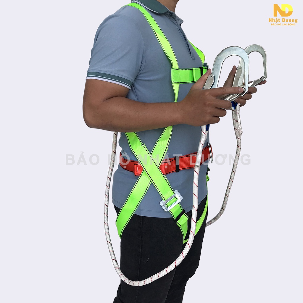 Dây an toàn toàn thân 2 móc sắt có giảm xóc TX11, Dây bảo hộ lao động Nhật Dương móc chịu lực 1000kg giúp bảo vệ hạn chế các tổn thương nếu xảy ra sự cố rơi khi leo trèo làm việc trên cao. Giám xóc giúp phân tán lực rơi, lực tác động lên cơ thể sẽ giảm đi rất nhiều