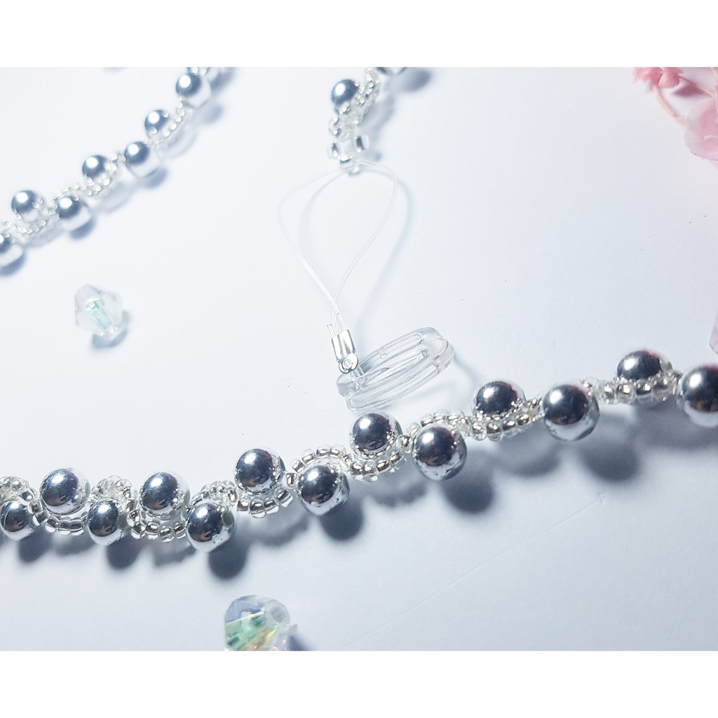 Với họa tiết chuỗi bằng hạt pha lê.