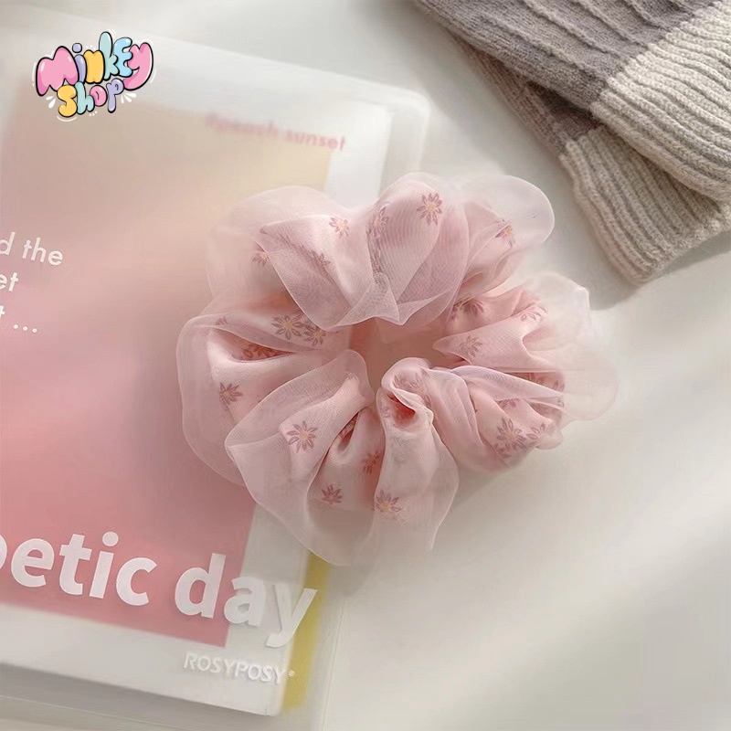 Giới thiệu Dây buộc tóc bằng vải voan lụa SCRUNCHIES họa tiết dễ thương dây cột tóc xinh xắn -Minkey